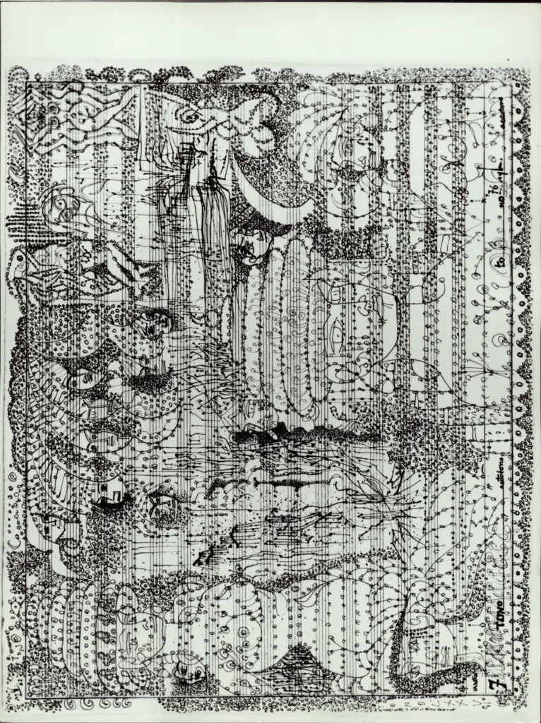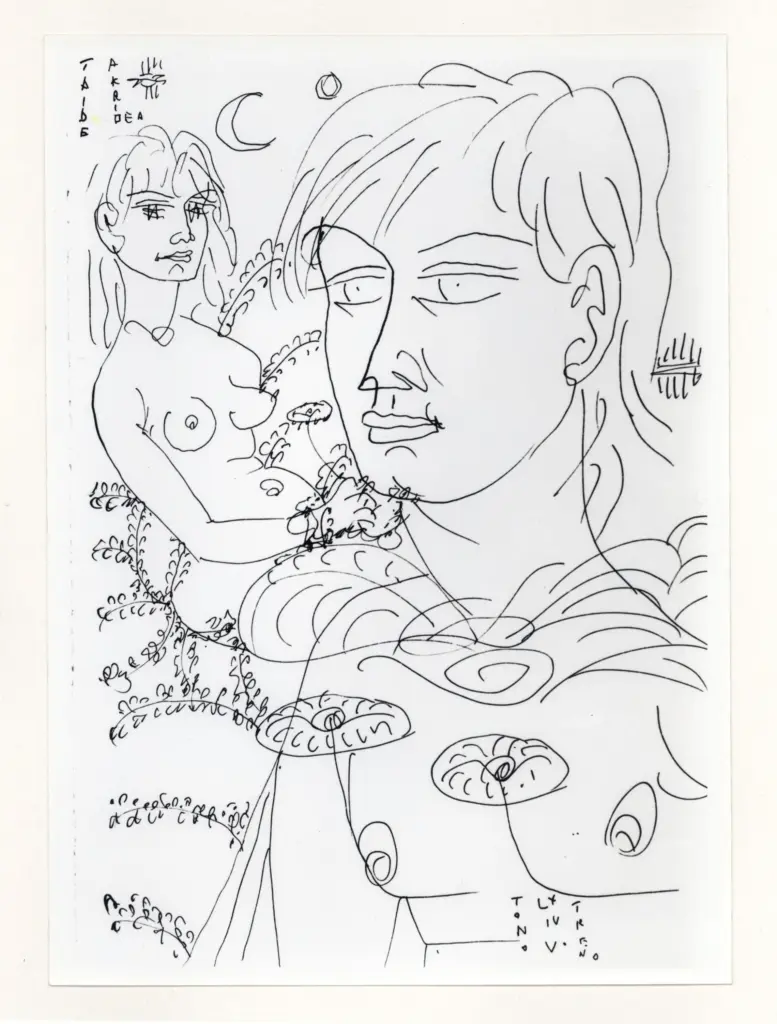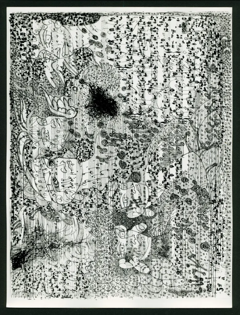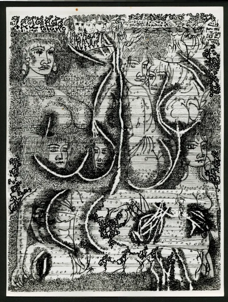 Zancanaro, Antonio , Spartito con personaggi in sottofondo Zancanaro, Antonio