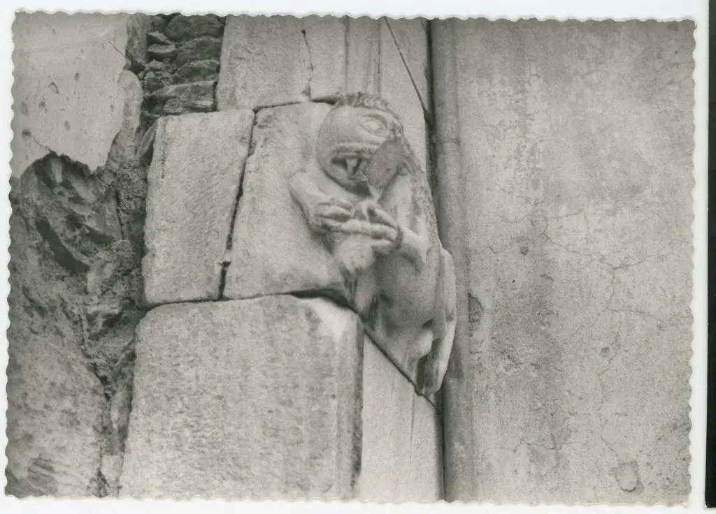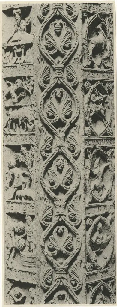 Anonimo sec. XIII - Leone stiloforo; Finta cornice architettonica con motivi decorativi