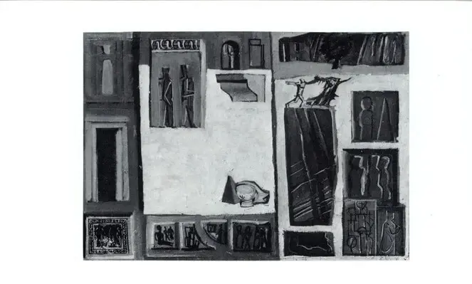 Anonimo , Sironi, Mario - sec. XX - Composizione arcaica con paesaggio Anonimo