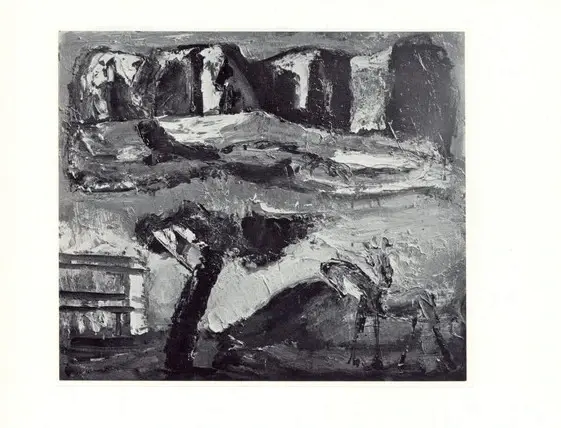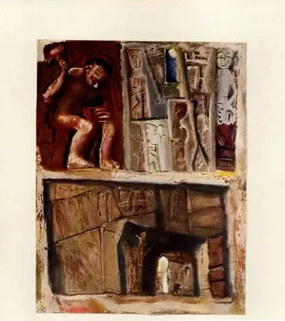 Sironi, Mario - sec. XX - Composizione arcaica con paesaggio