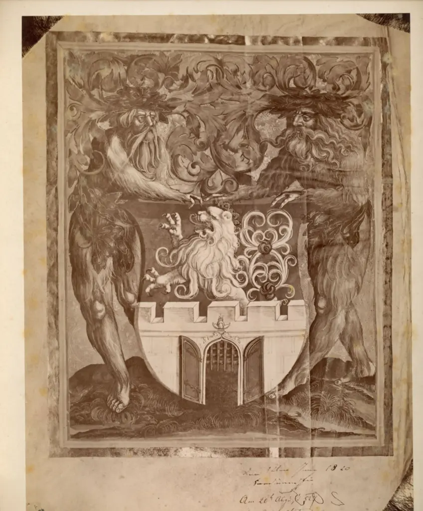 Stemma gentilizio con leone rampante, Figure antropomorfe