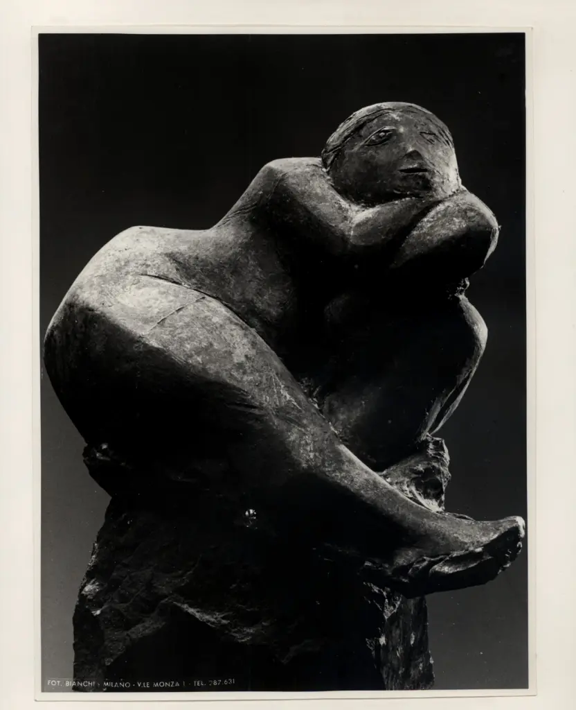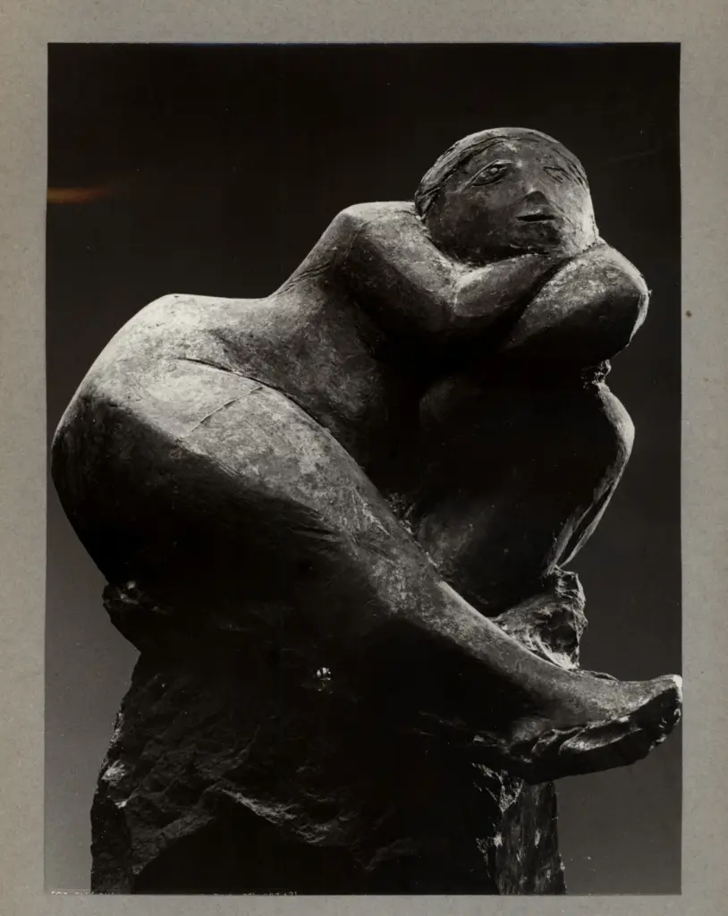 Scultura di donna in atteggiamento di riflessione