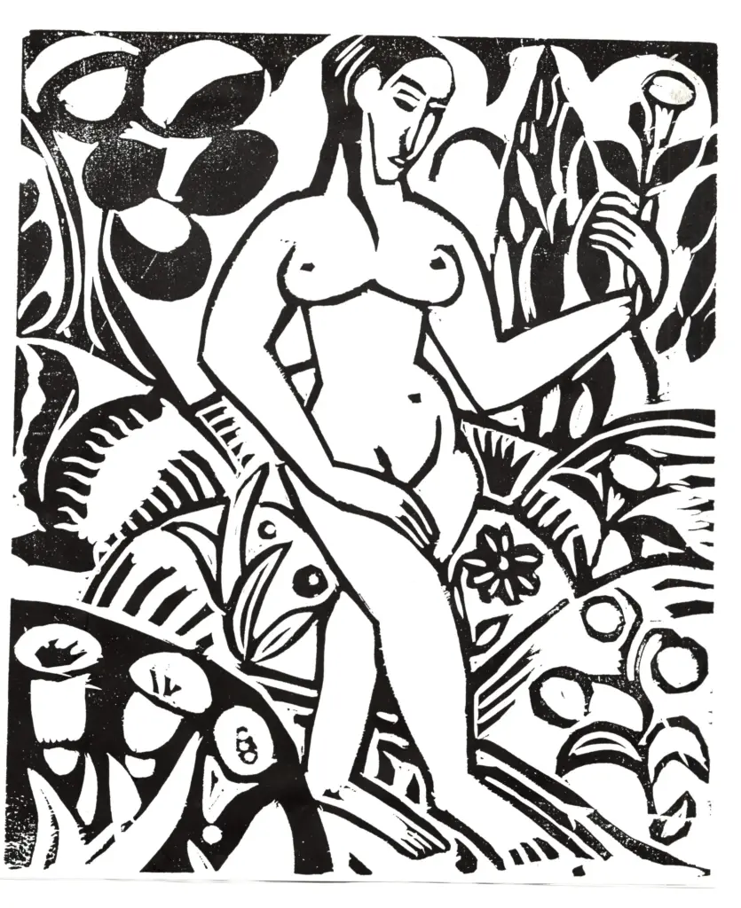 - paesaggio fiorito con donna nuda