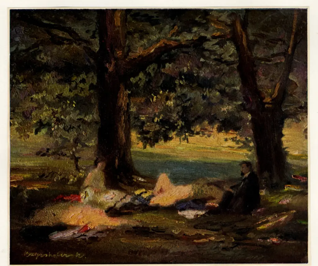 ![Roussel, Ker Xavier , Faun und Nymphe am Brumen. Kreide]()