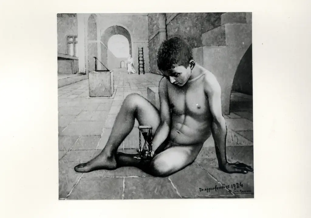 ![Ravenna, Juti , Ragazzo nudo seduto in terra con clessidra in mano]()