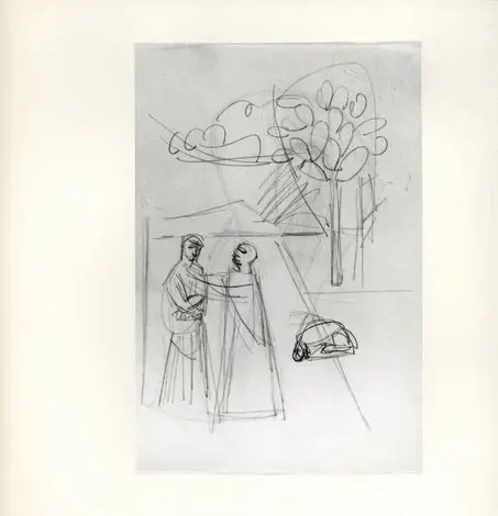![Anonimo , Tavernari, Vittorio - sec. XX - Studio per tomba con due figure e paesaggio sul fondo]()