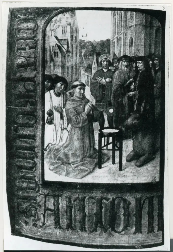 Anonimo fiammingo sec. XVI , Sant'Antonio da Padova e il miracolo della mula Anonimo fiammingo sec. XVI
