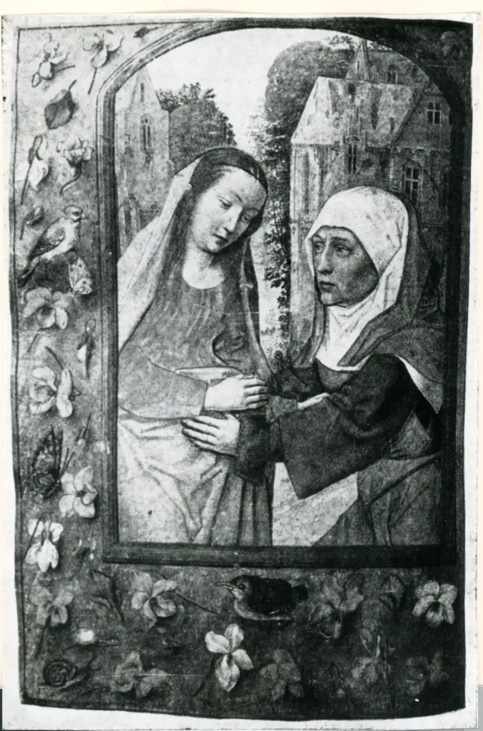 Anonimo fiammingo sec. XVI , Visitazione, Fregio con motivi vegetali Anonimo fiammingo sec. XVI
