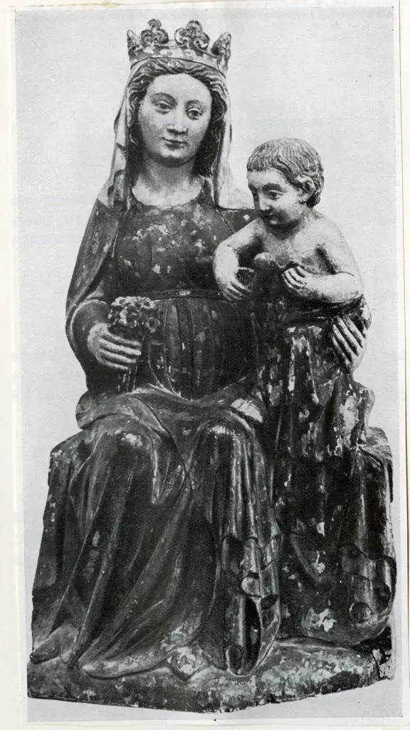 Anonimo , Madonna con bambino: scultura francese del XIV° seco[lo] Anonimo