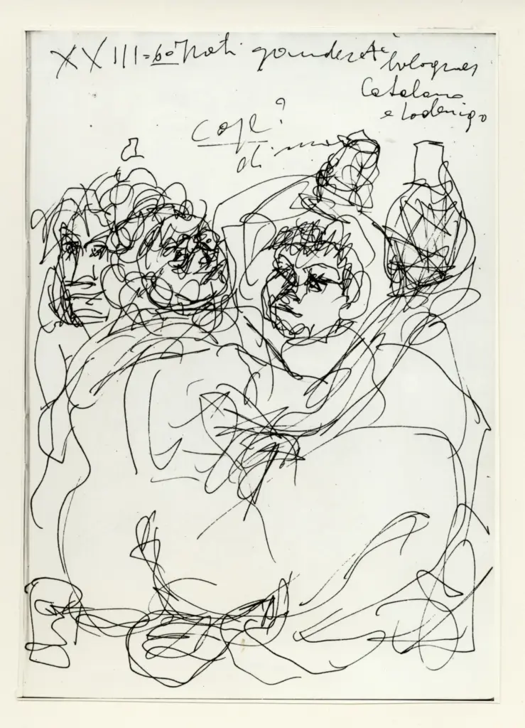 Università di Pisa. Dipartimento di Storia delle Arti , Zancanaro, Antonio - sec. XX - Seduttori e Ruffiani - foglio 4 verso e foglio 5 recto Università di Pisa. Dipartimento di Storia delle Arti