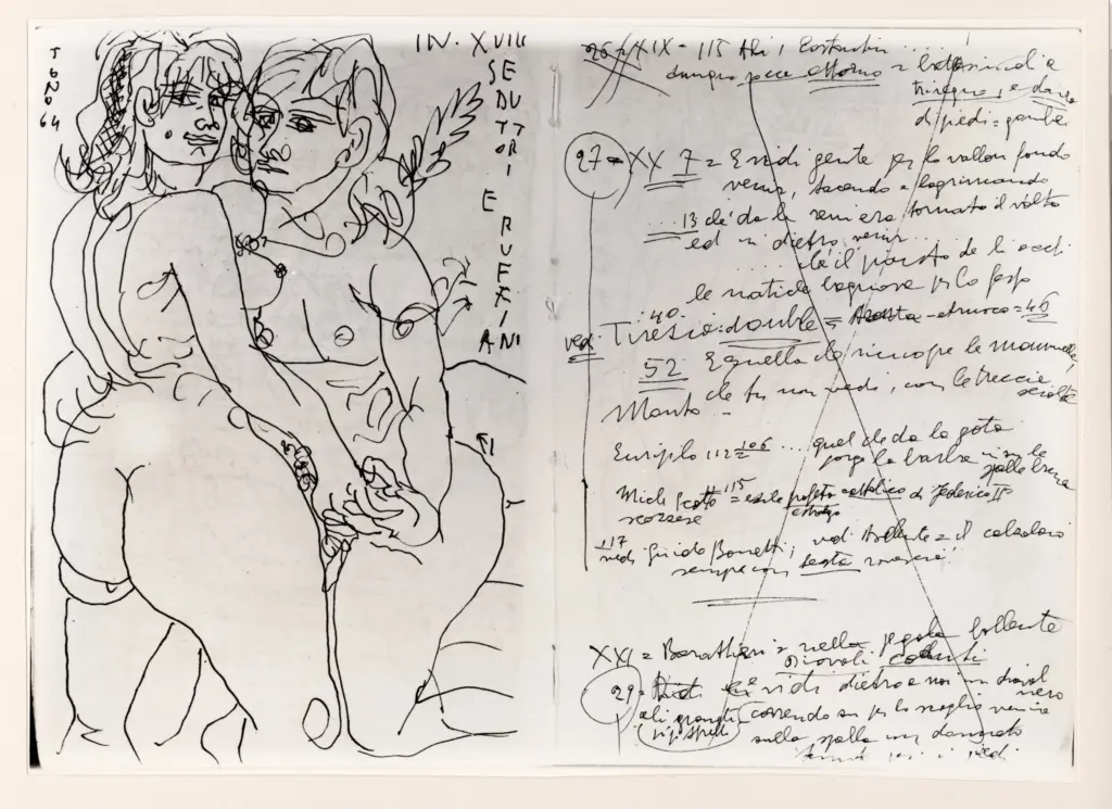 ![Università di Pisa. Dipartimento di Storia delle Arti , Zancanaro, Antonio - sec. XX - Seduttori e Ruffiani - foglio 4 verso e foglio 5 recto]()