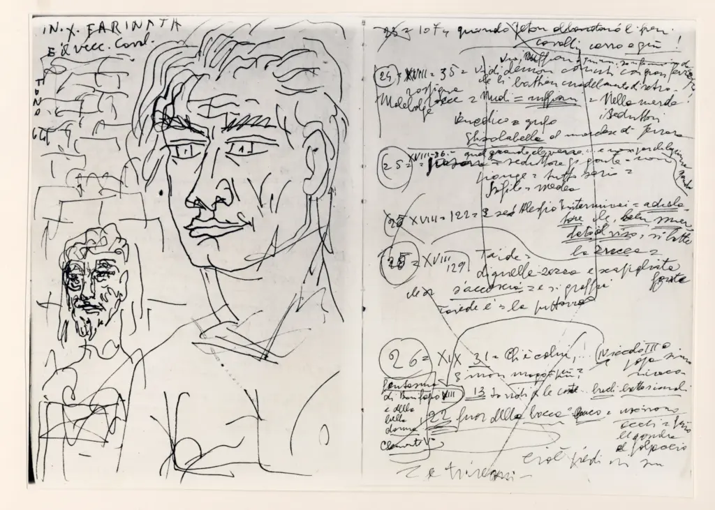 Università di Pisa. Dipartimento di Storia delle Arti , Zancanaro, Antonio - sec. XX - Farinata degli Uberti - foglio 3 verso e foglio 4 recto Università di Pisa. Dipartimento di Storia delle Arti