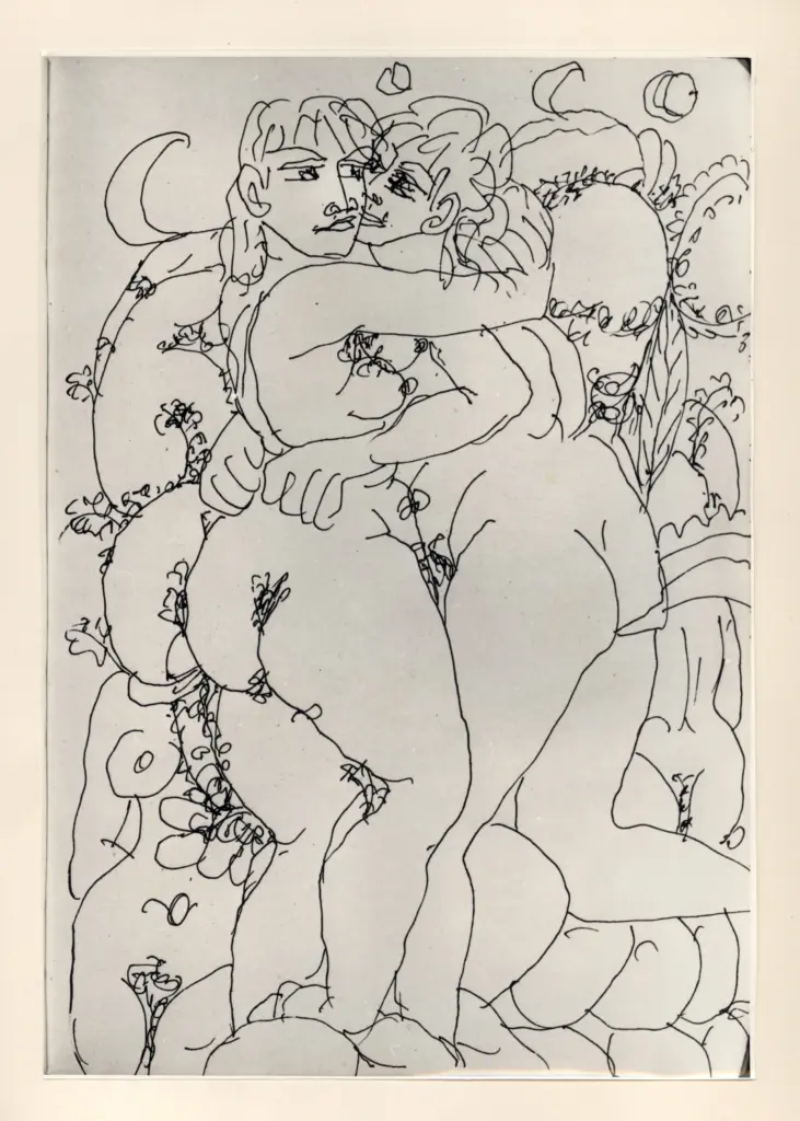 Università di Pisa. Dipartimento di Storia delle Arti , Zancanaro, Antonio - sec. XX - "Divina Commedia": quaderno B, 3a di copertina: "Paolo e Francesca" Università di Pisa. Dipartimento di Storia delle Arti