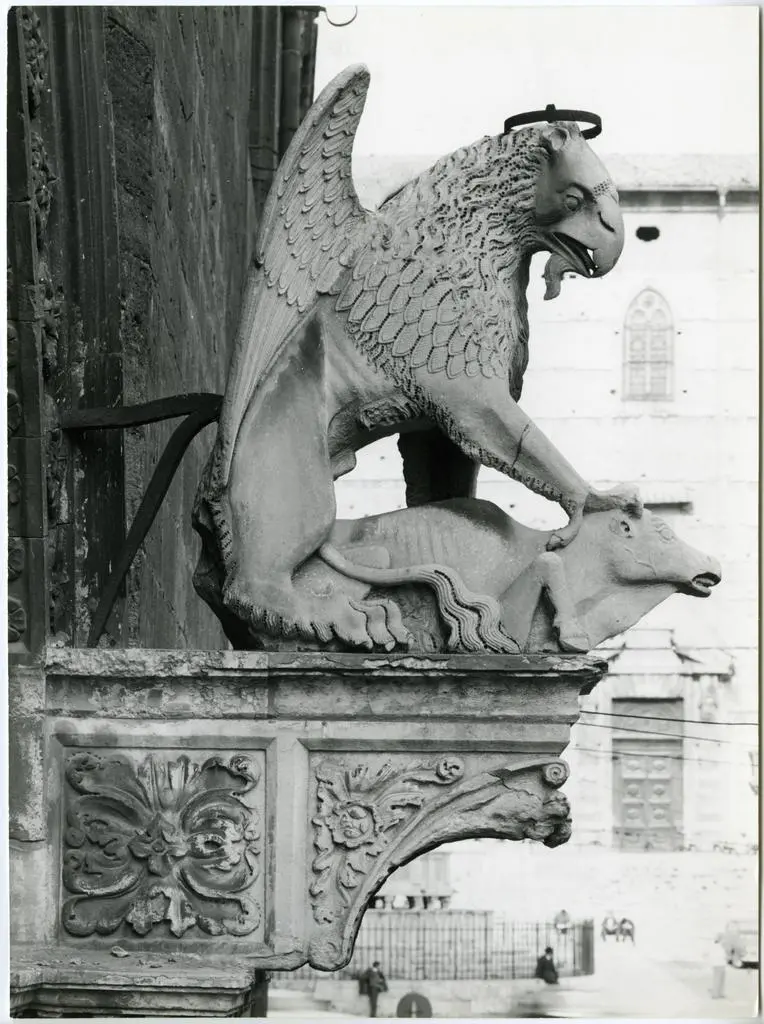 ![Anonimo toscano sec. XIV , Grifo alato che sconfigge un bue]()