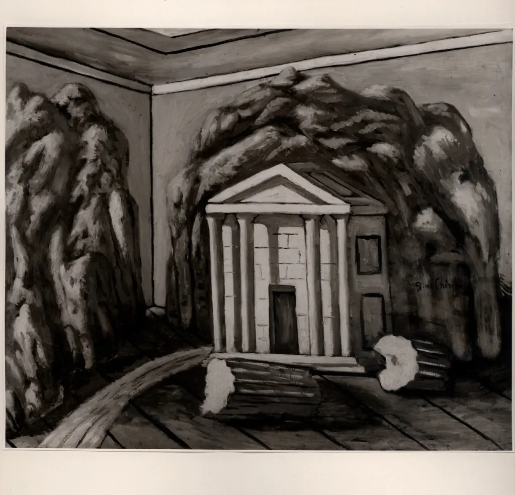 De Chirico, Giorgio , Interno con tempio greco De Chirico, Giorgio