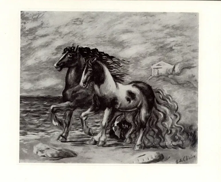 ![De Chirico, Giorgio , Cavalli in riva al mare]()