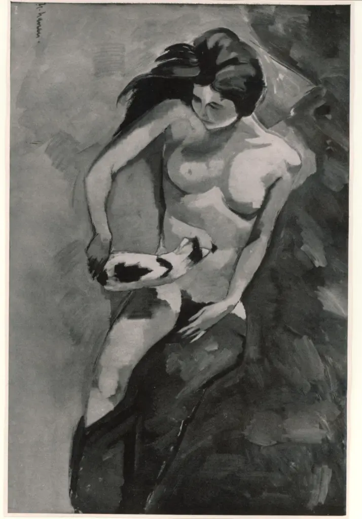 Nauen, Heinrich , Akt mit kaatze Nauen, Heinrich
