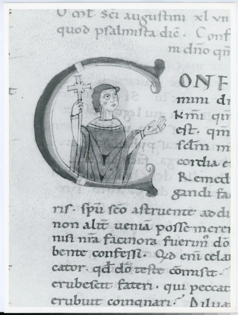 Anonimo italiano sec. XI , Iniziale C, Iniziale abitata, Santo Anonimo italiano sec. XI