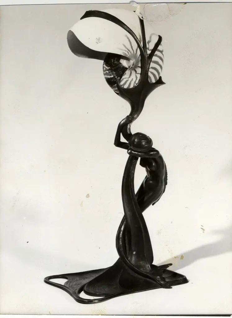 ![Anonimo , Gurschner, Gustav - sec. XIX - Lampe en bronze avec nautilus]()