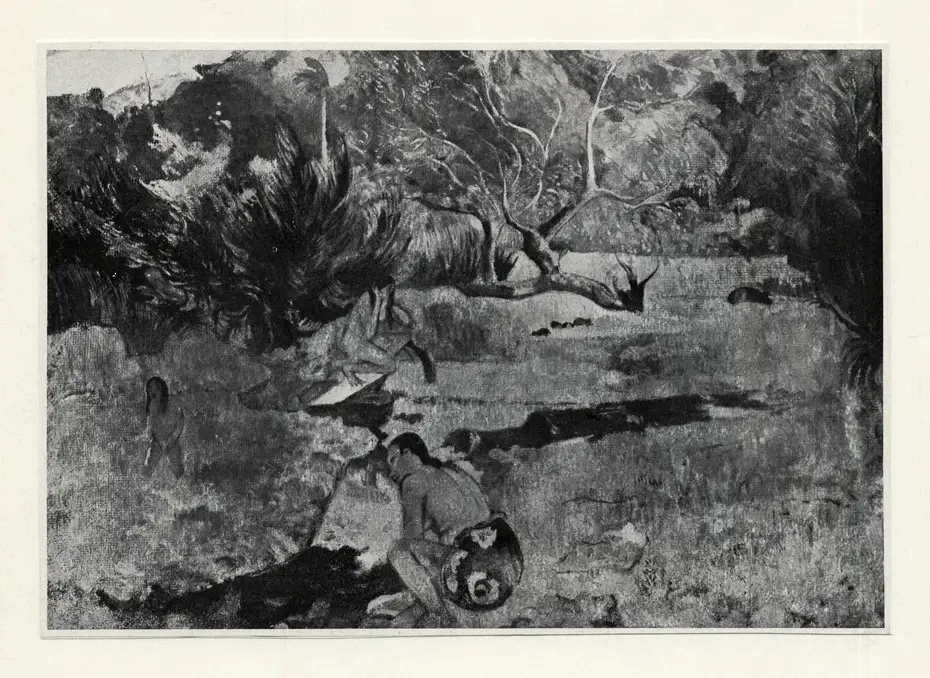 ![Gauguin, Paul , Paesaggio tahitiano con figure]()