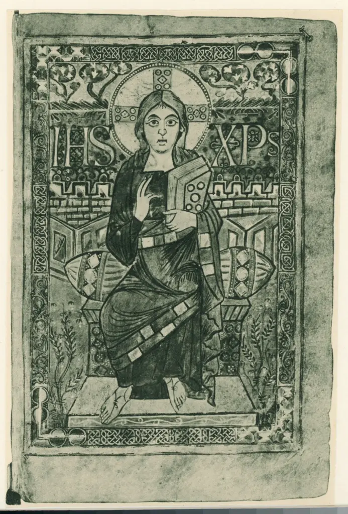 Anonimo sec. VIII , Cristo benedicente in trono, Motivi decorativi geometrici Anonimo sec. VIII
