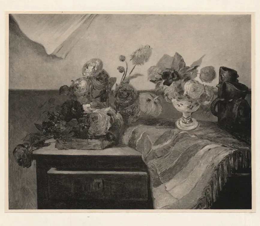Gauguin, Paul , Natura morta con ritratto di Charles Laval ![ , Fiori su un cassettone - Natura morta con fiori]()