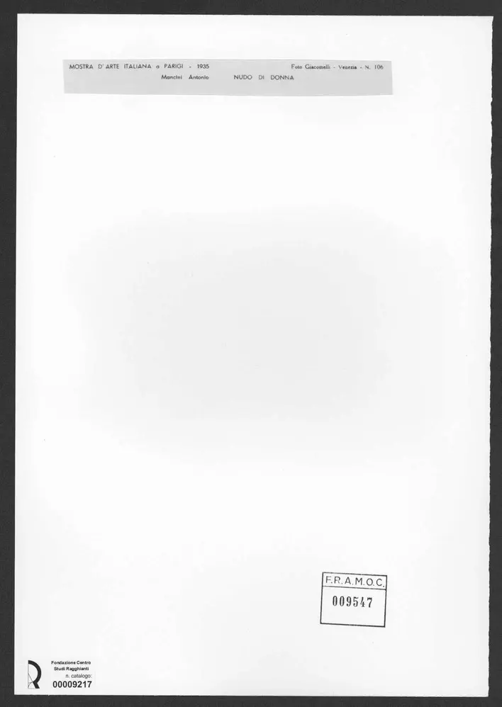 MOSTRA D'ARTE ITALIANA a PARIGI - 1935 Foto Giacomelli - N. 106 Mancini Antonio NUDO DI DONNAF.R.A.M.O.C. 009547