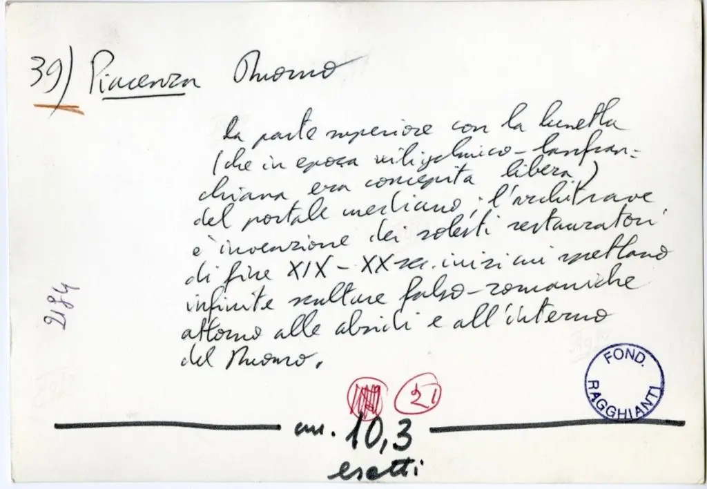 • Anonimo , 39) Piacenza. Duomo. la parte superiore con la lunetta (che in epoca wiligelmico-lanfranchiana era concepita libera) del portale mediano