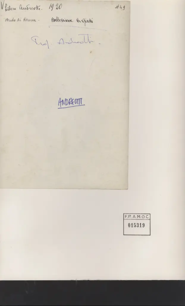 Libero Andreotti 1920 Nudo di donna n 49 Prof Andreotti Andreotti F.R.A.M.O.C. 015319 presente sul supporto non più incollato al retro della foto.