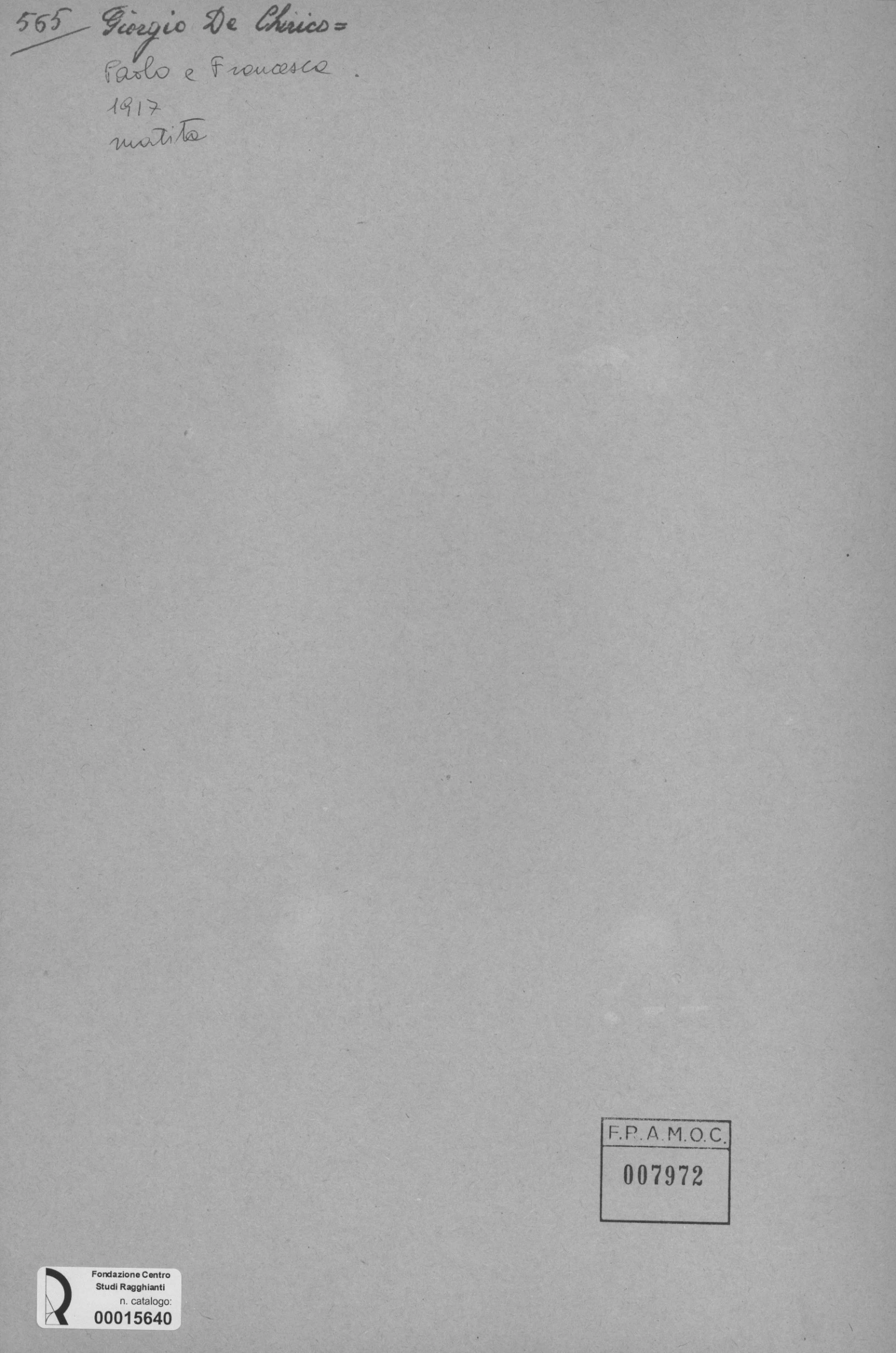 F.R.A.M.O.C. 007972 Giorgio De Chirico Paolo e Francesca 1917 Matita