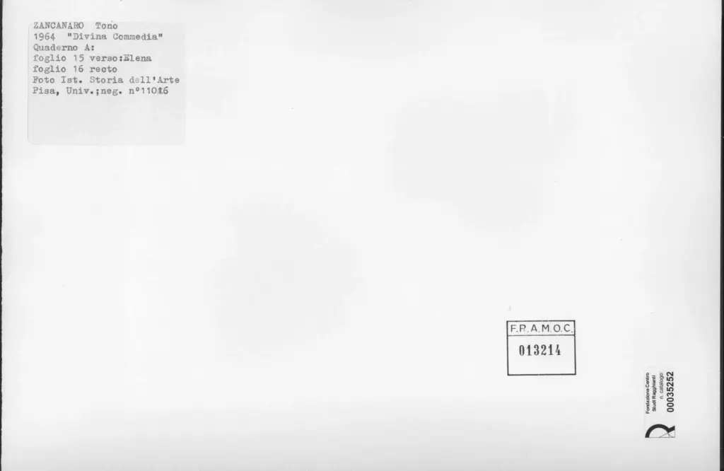 Università di Pisa. Dipartimento di Storia delle Arti , Zancanaro, Antonio - sec. XX - Elena - foglio 15 verso e foglio 16 recto , retro