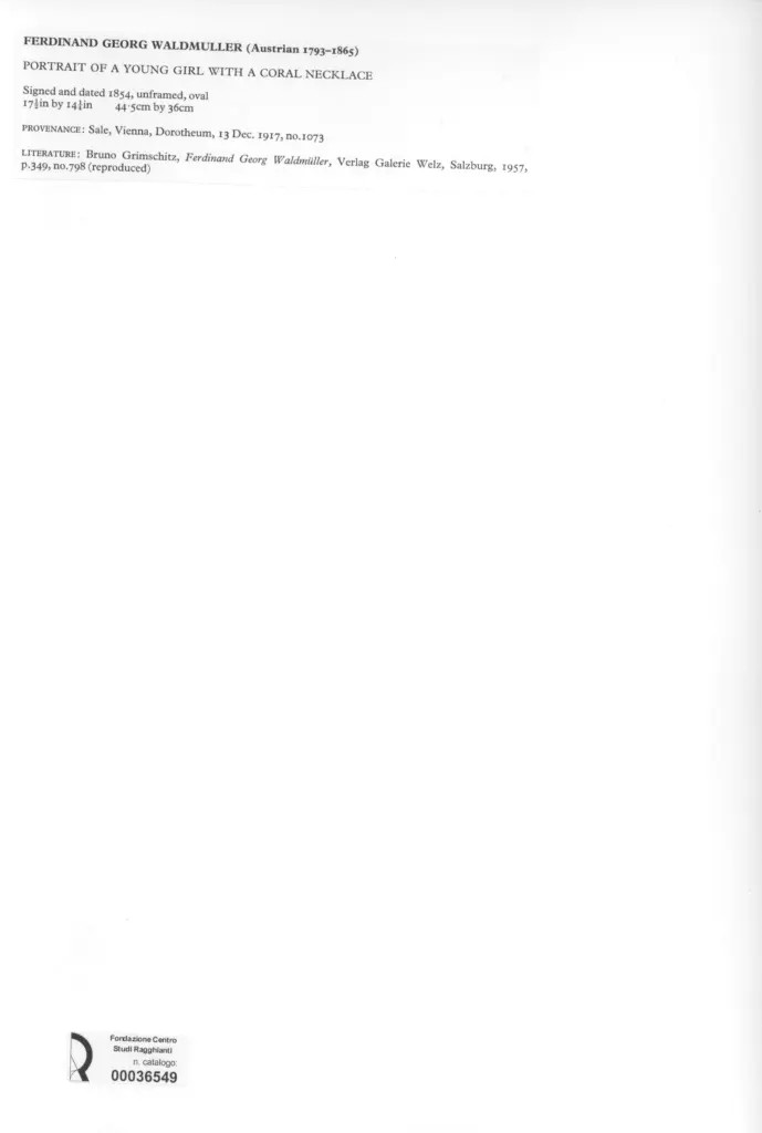 Waldmüller, Ferdinand Georg - sec. XIX - Ritratto di ragazzina con collana di corallo