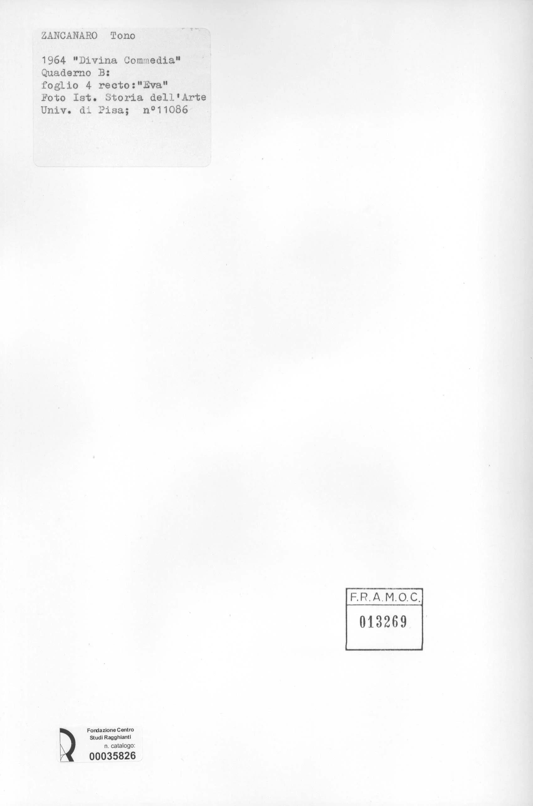 Zancanaro, Antonio - sec. XX - "Divina Commedia": quaderno B, foglio 4 recto: "Eva"