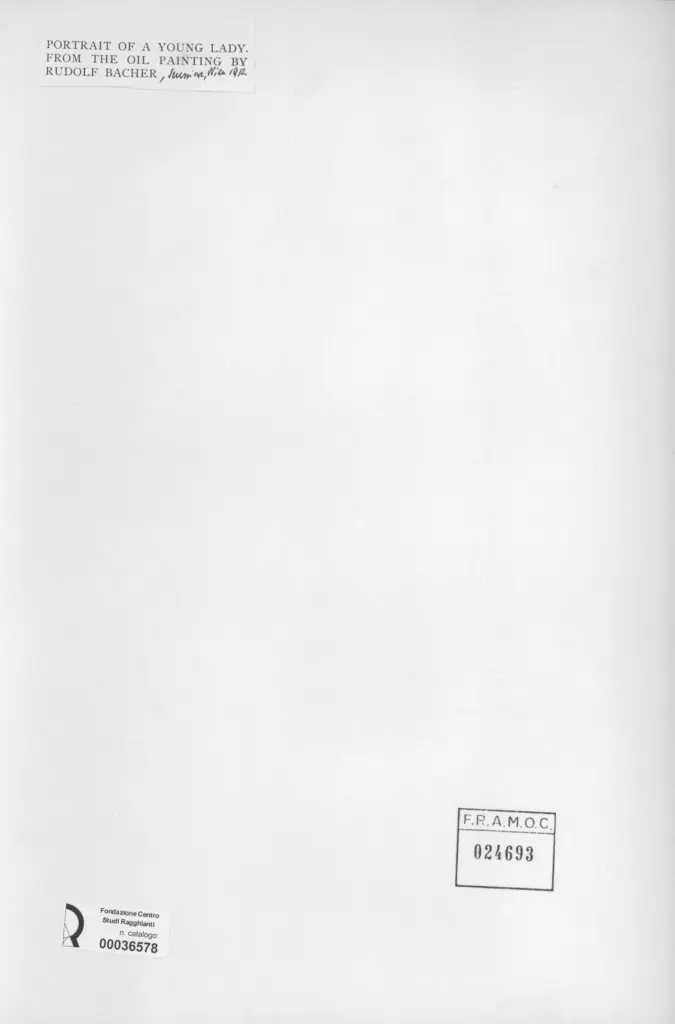Anonimo , Bacher, Rudolf - sec. XX - Ritratto di giovane signora , retro