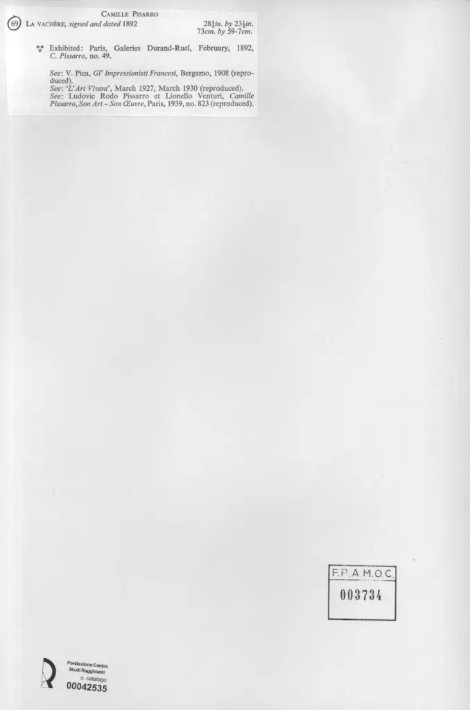 • Anonimo , Pissarro, Camille - sec. XIX - La vachère , fronte