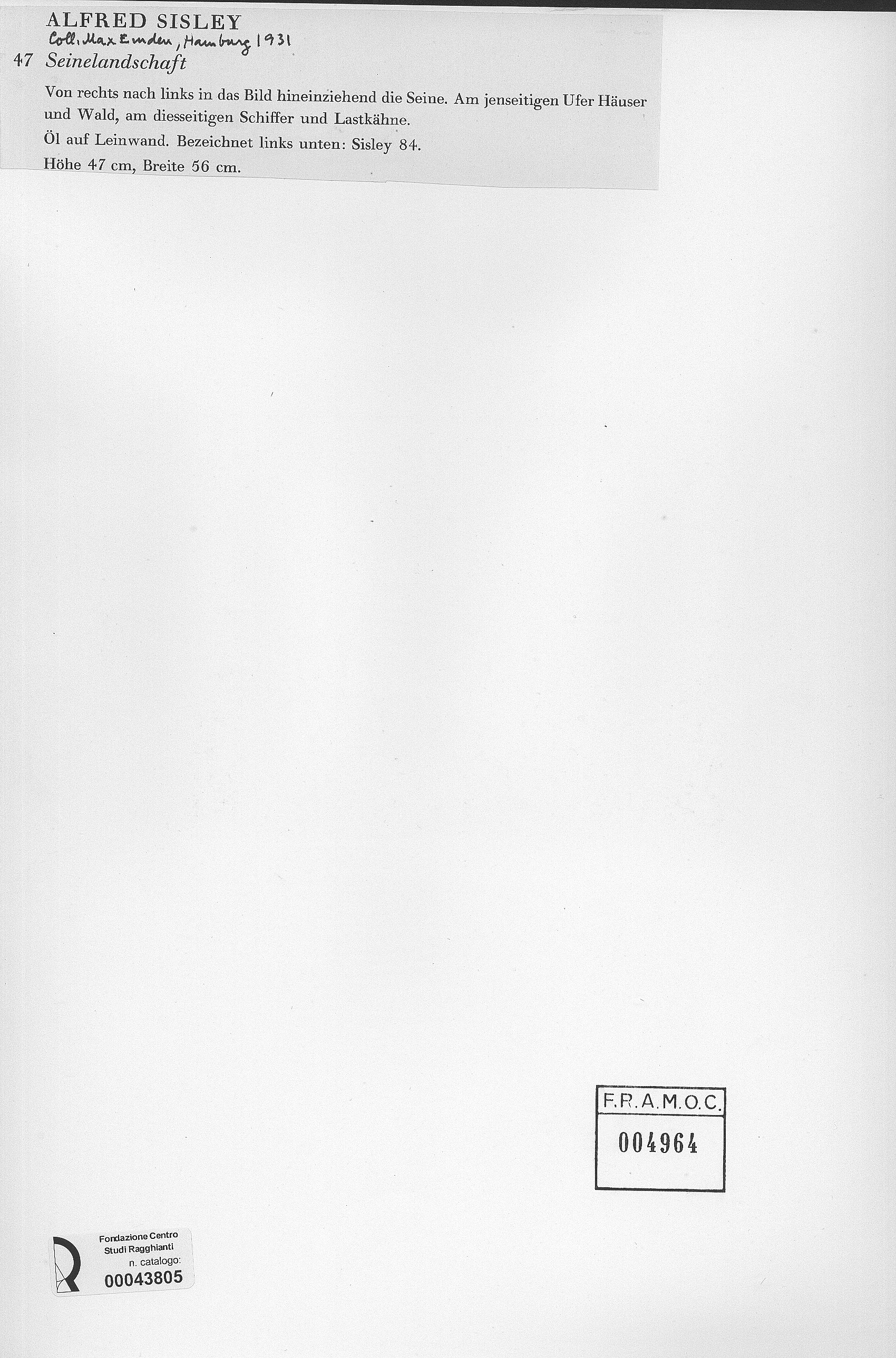 Anonimo , Sisley, Alfred - sec. XIX - Seinelandschaft , fronte