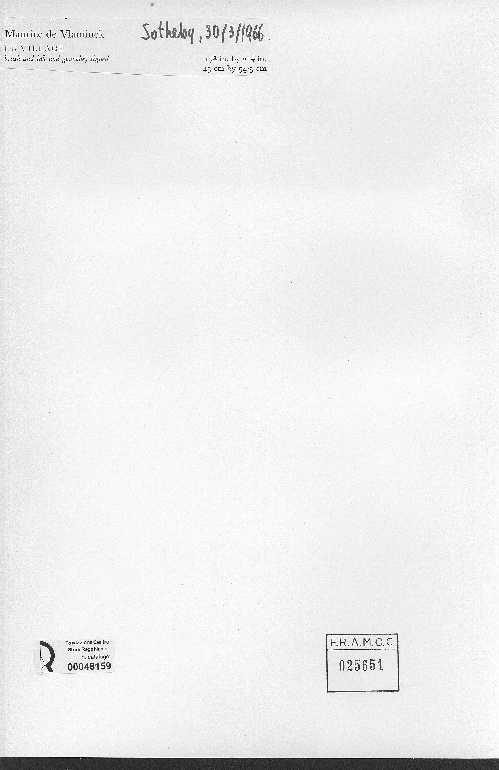 Galerie Bernheim-Jeune , Vlaminck, Maurice - sec. XX - Le village , fronte