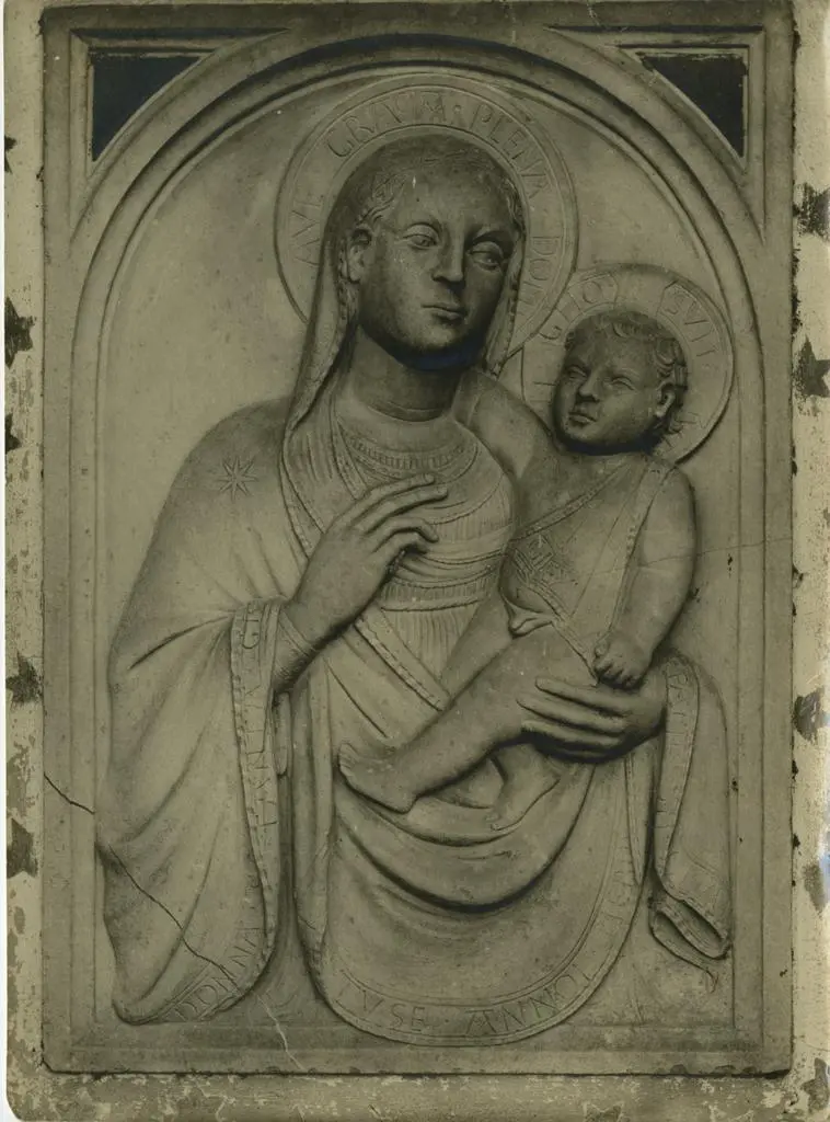 Gabinetto Fotografico della Soprintendenza Speciale per il Patrimonio Storico, Artistico ed Etnoantropologico e per il Polo Museale della città di Firenze , Firenze - Rovezzano (Mulino). Vergine col Bambino: Bassorilievo in marmo (scuola Fiorentina). sec. XIV. 21X27