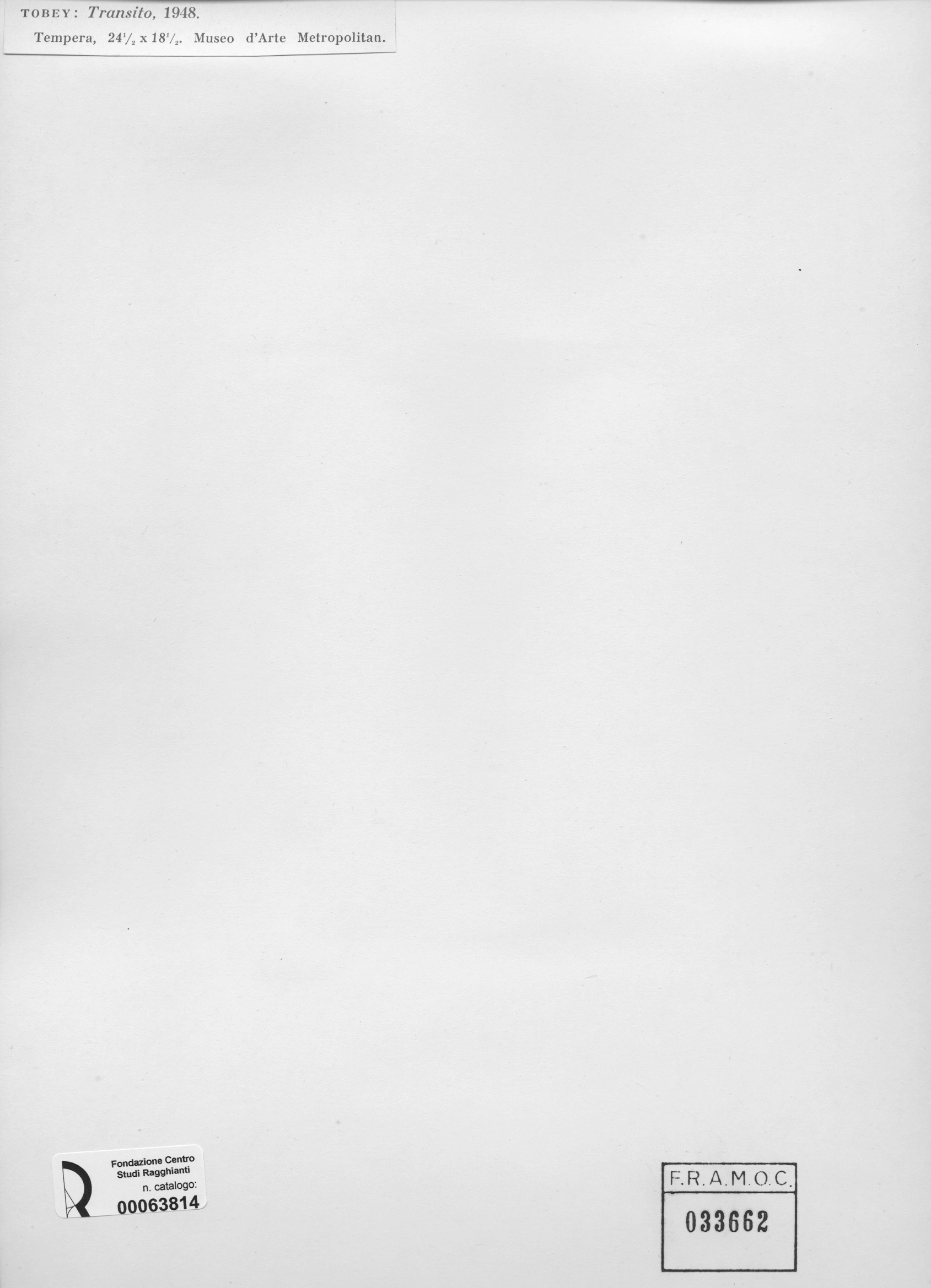 Anonimo , Tobey, Mark - sec. XX - Transito