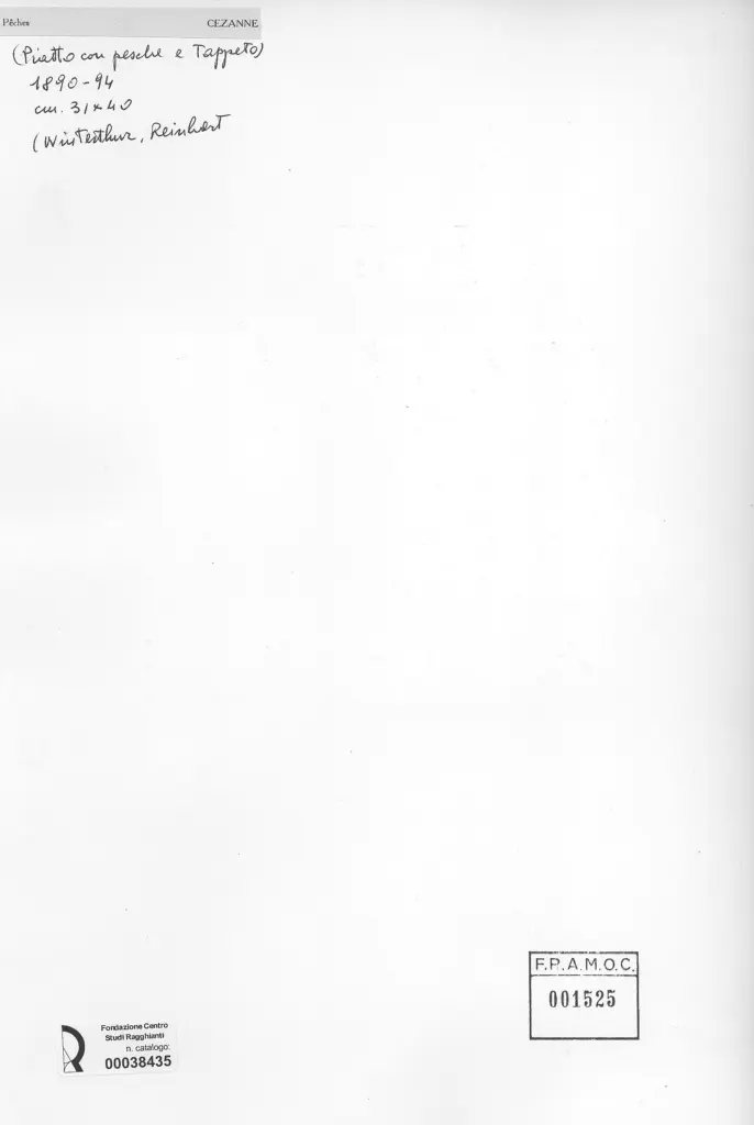 Anonimo , Cézanne, Paul - sec. XIX - Piatto con pesche e tappeto