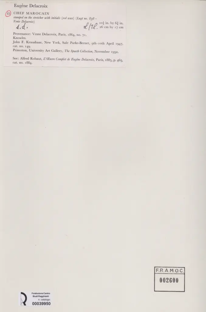 • Anonimo , Delacroix, Eugène - sec. XIX - Chef marocain , fronte