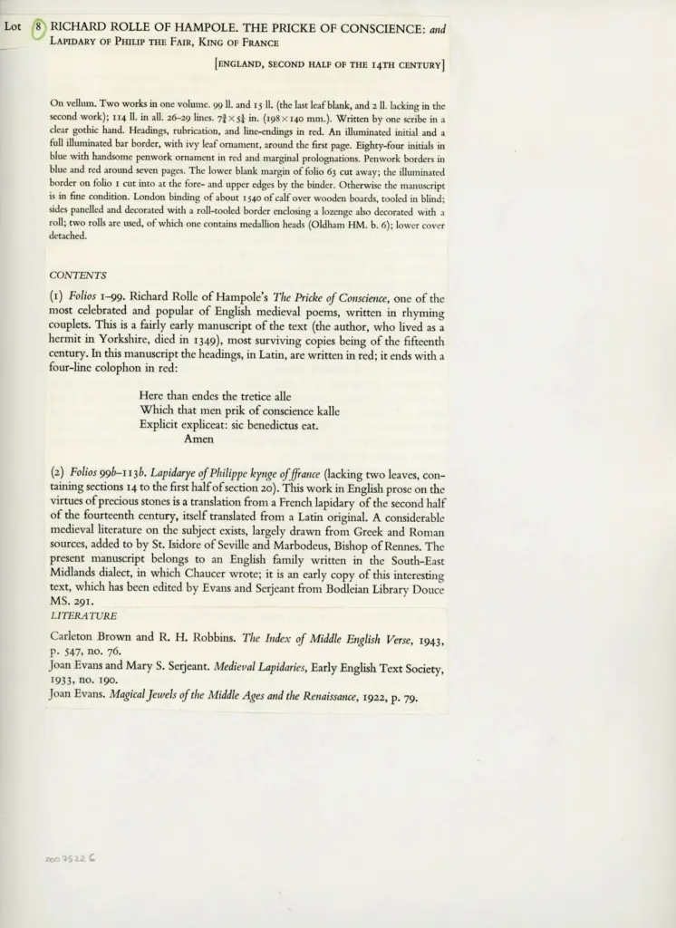 Richard Rolle of Hampole. The Pricke of Conscience: and Lapidary of Philip the Fair, King of France