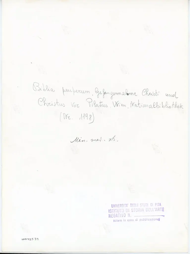 Università di Pisa. Dipartimento di Storia delle Arti , Biblia pauperum, Gefangennahme Christi und Christus vor Pilatus. Wien, Nationalbibliothek (Nr. 1198)