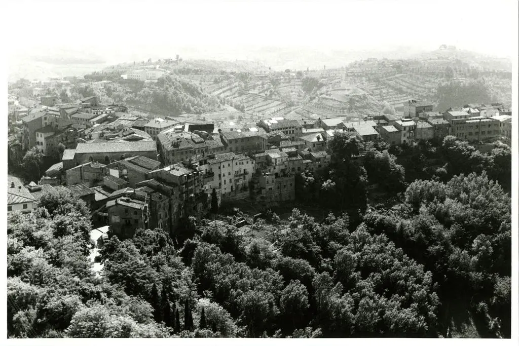 Veduta con i fronti a valle degli edifici che vanno dal convento di S. Domenico al Seminario