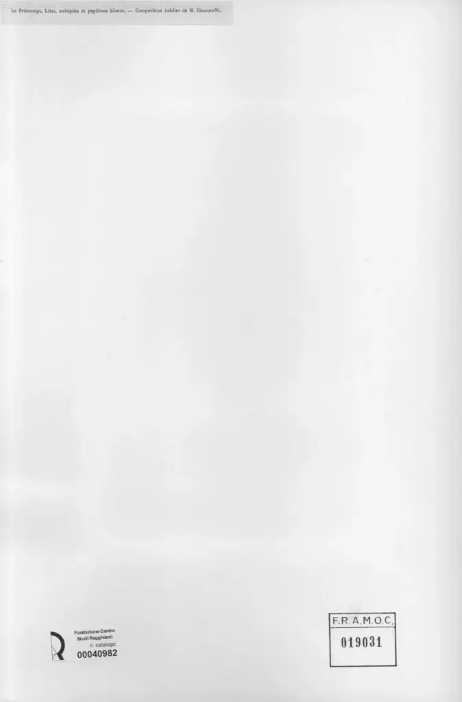 Giacomelli, M., Le Printemps. Lilas, aubépine et papillon blancs -