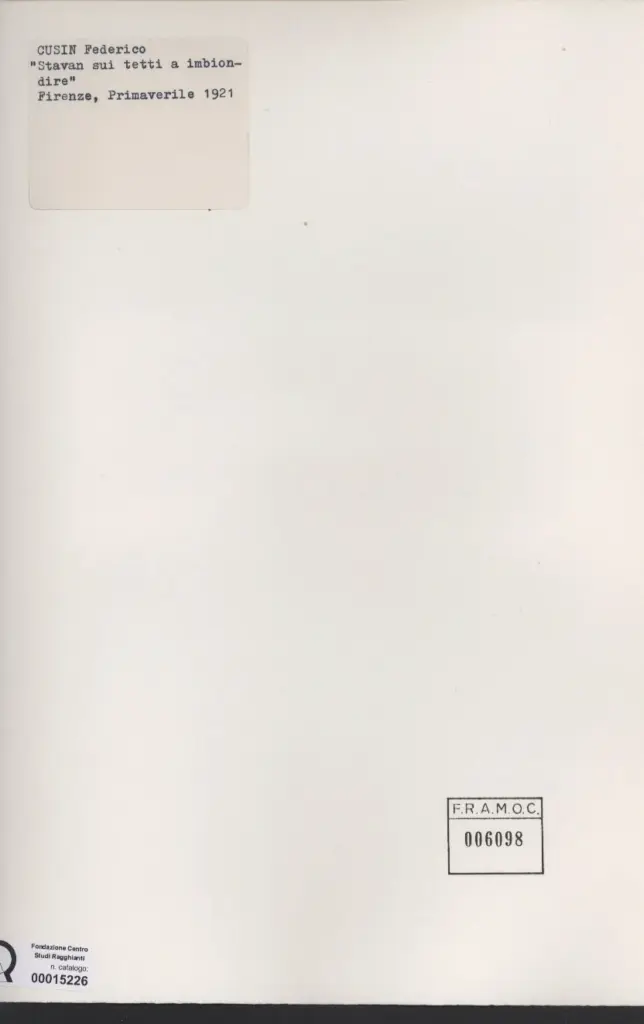 Cusin, Federico, Stavan sui tetti a imbiondire (Firenze Primaverile 1921)