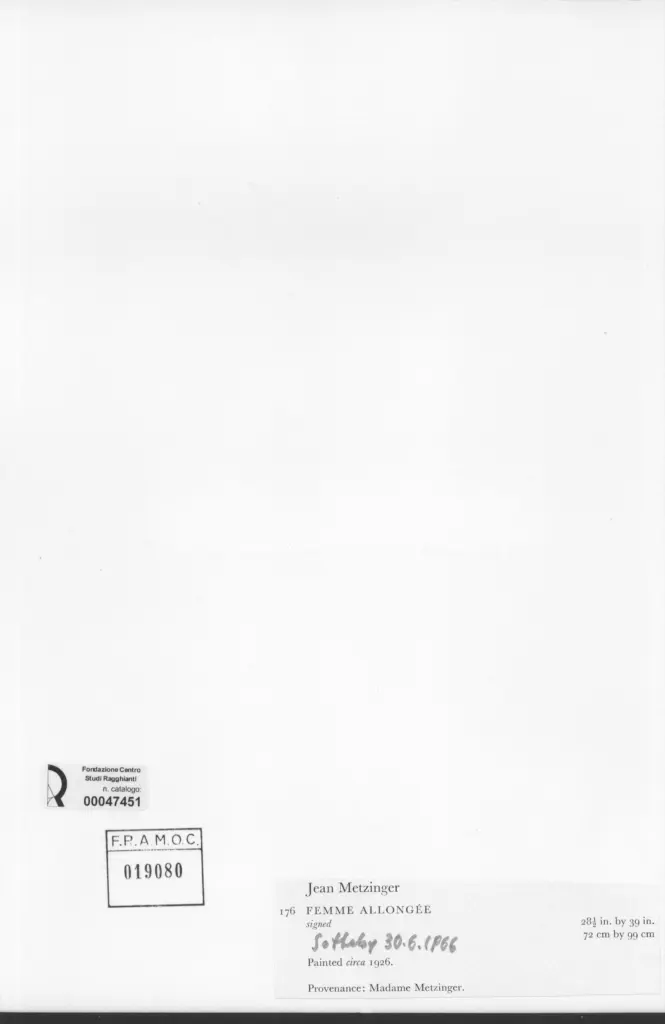• Anonimo , Metzinger, Jean - sec. XX - Femme allongée , fronte