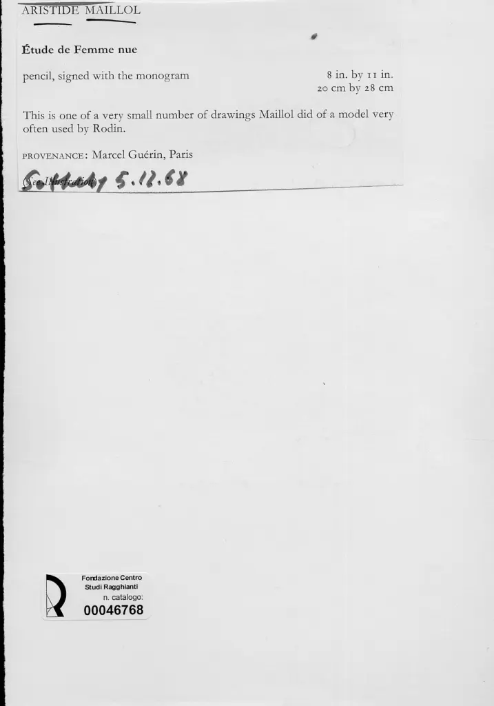 Maillol, Aristide, Studio di donna nuda