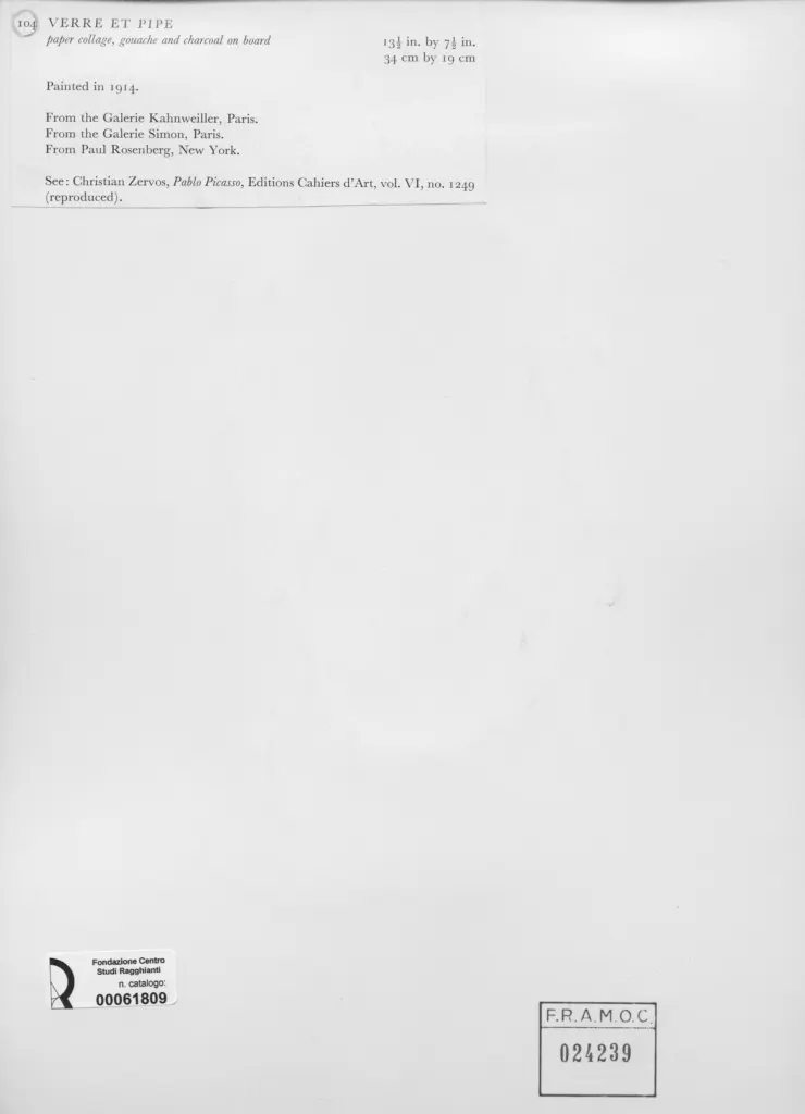 Anonimo , Picasso, Pablo - sec. XX - Verre et Pipe , fronte