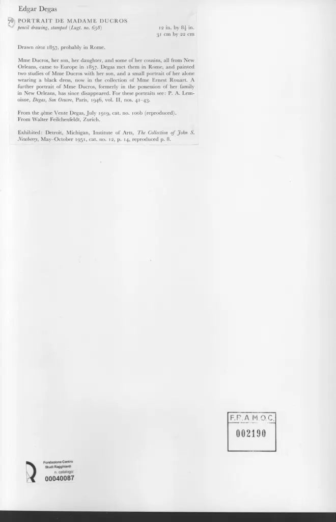Anonimo , Degas, Edgar - sec. XIX - Portrait de Madame Ducros , fronte